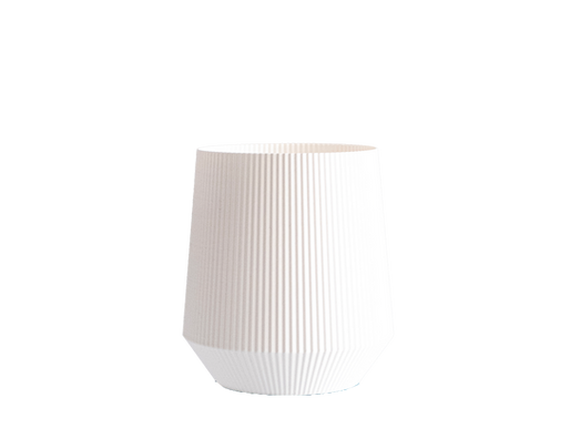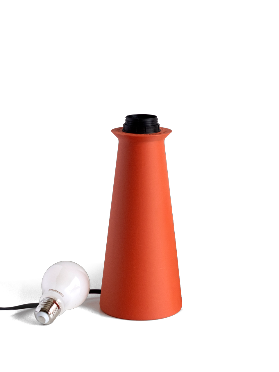 La lampe est donc en deux parties : la première, la base, est fabriquée soit à partir de matière minérale (du gypse précisément, ce qui ressemble à du plâtre) et d'une base de résine ou en bioplastique produit à partir d'amidon de maïs (PLA) pour les versions unies. La seconde partie, l'abat-jour, est imprimée en 3D avec ce même bio plastique.